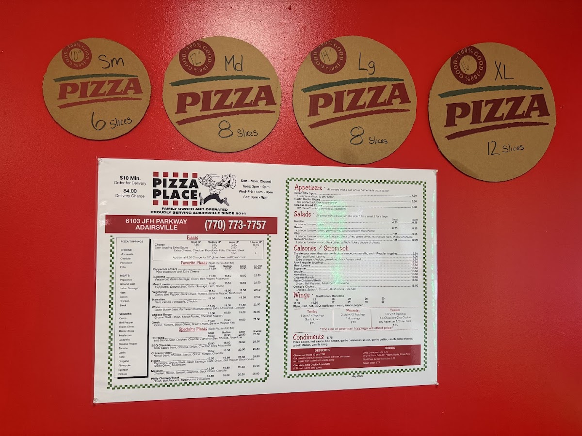 Welcome to Pizza Place, a hidden gem located at 6103 Joe Frank Harris Pkwy NW in Adairsville, GA. Known for its mouth-watering pizzas, this restaurant offers a delightful selection that ranges from classic cheese to specialty options like the Philly Steak and Hot Wing Pizza. Each pie showcases a thick, juicy cheese, making every bite a pleasure. The menu also features irresistible appetizers, such as Garlic Knots and Cheese Bread, perfect for sharing.